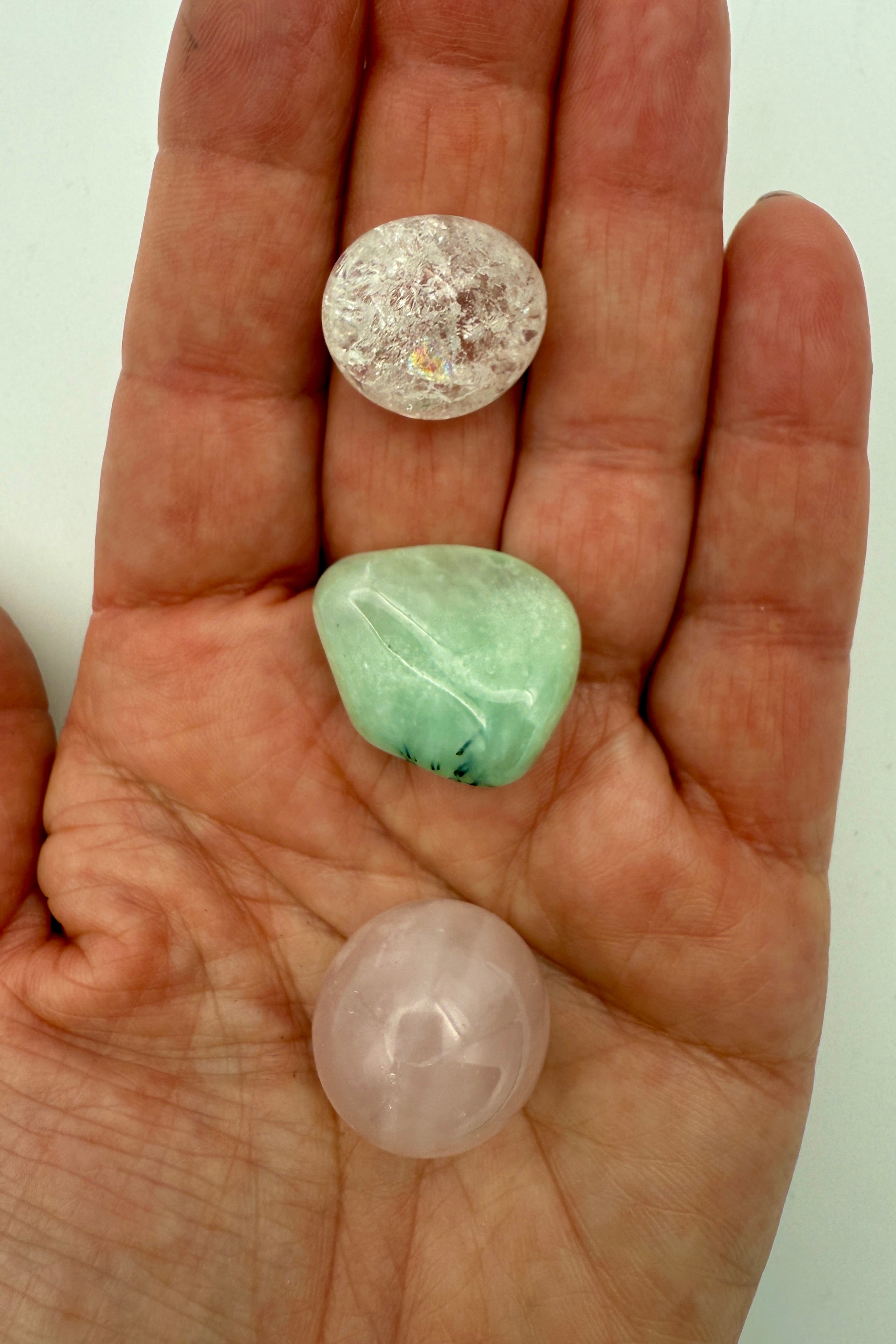 Sættet indeholder de her 3 krystaller. De arbejder sammen og føles trygge i hånden.